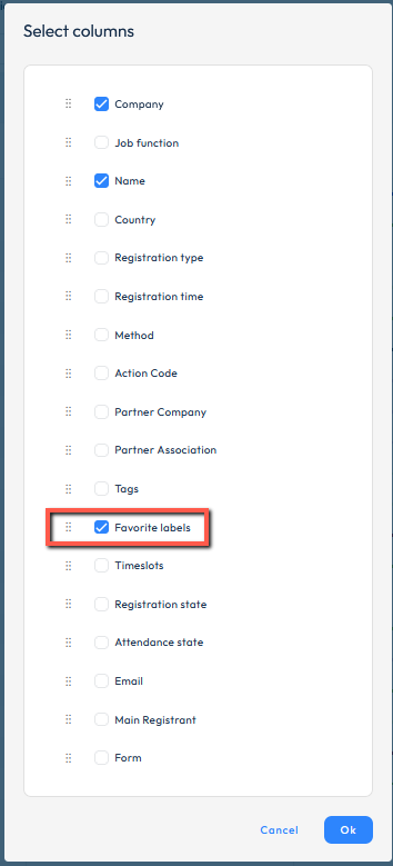 Added a ‘Favorite Labels’ column option for visitor exports. This column is not included in default export templates, it must be manually selected.