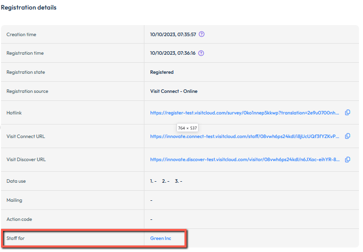 We’ve added a new field under Registration details in the Visitors section displaying the partner (exhibitor) that the visitor is registered under as staff.