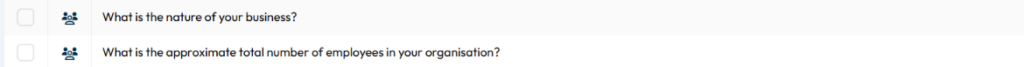 • Custom questions – Questions created specifically for your event or organisation. You can select these individually from the list.